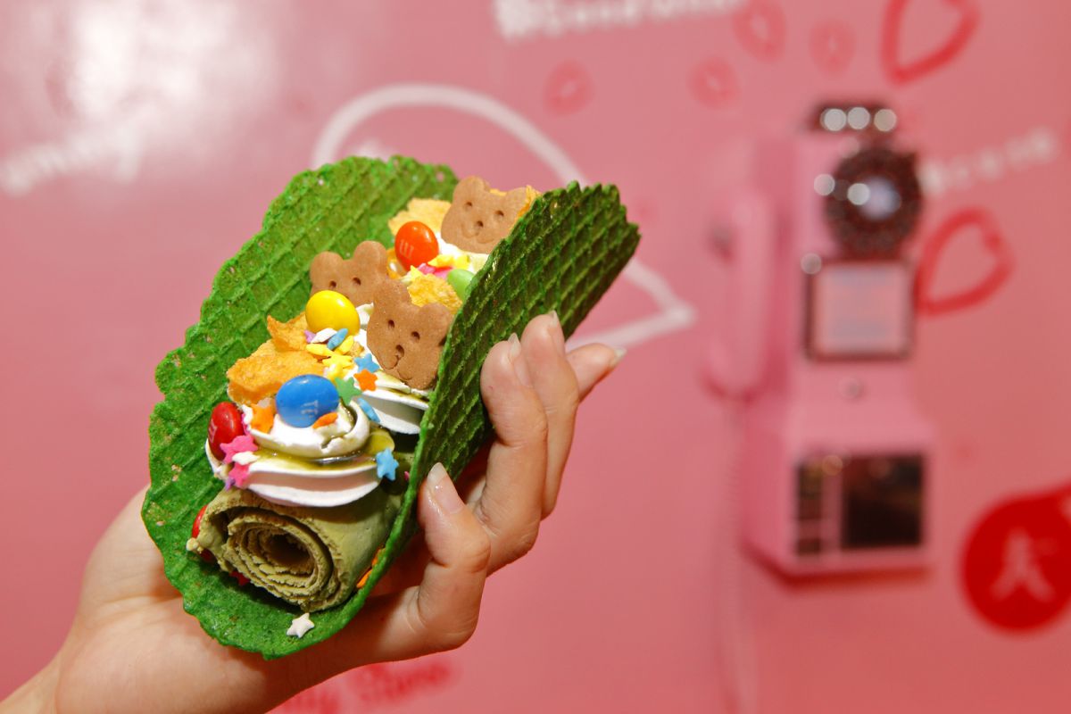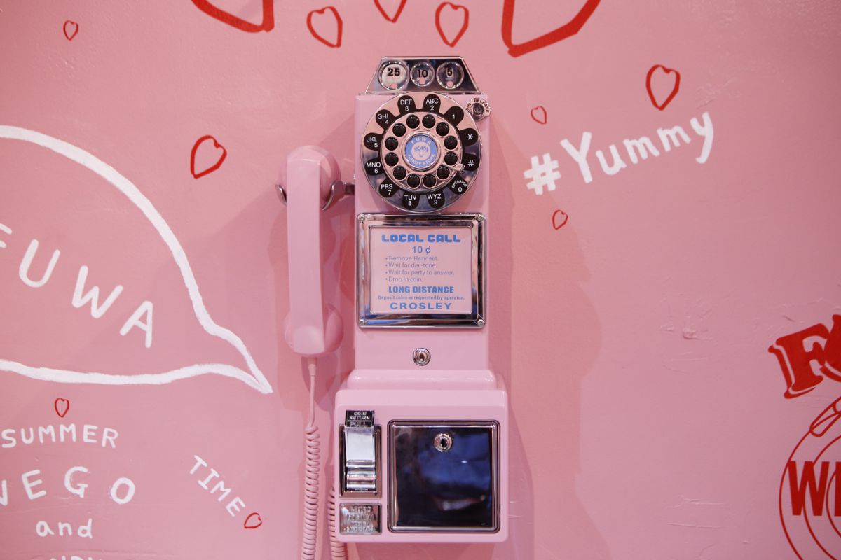ピンクで統一された店内にはカウンターがあり、その場でアイスクリームタコスやロールアイスを楽しむことができます。ウォールアートやピンク色の電話機など、“映える”フォトスポットもあるので、スイーツと一緒に写真を撮ってみてはいかが?