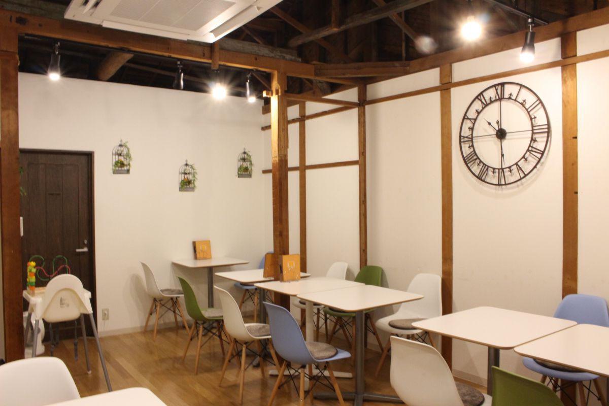 2階にはイートインスペースがあります。ナチュラルテイストの居心地のよい空間で、ゆっくりお喋りしながらケーキを楽しみましょう。