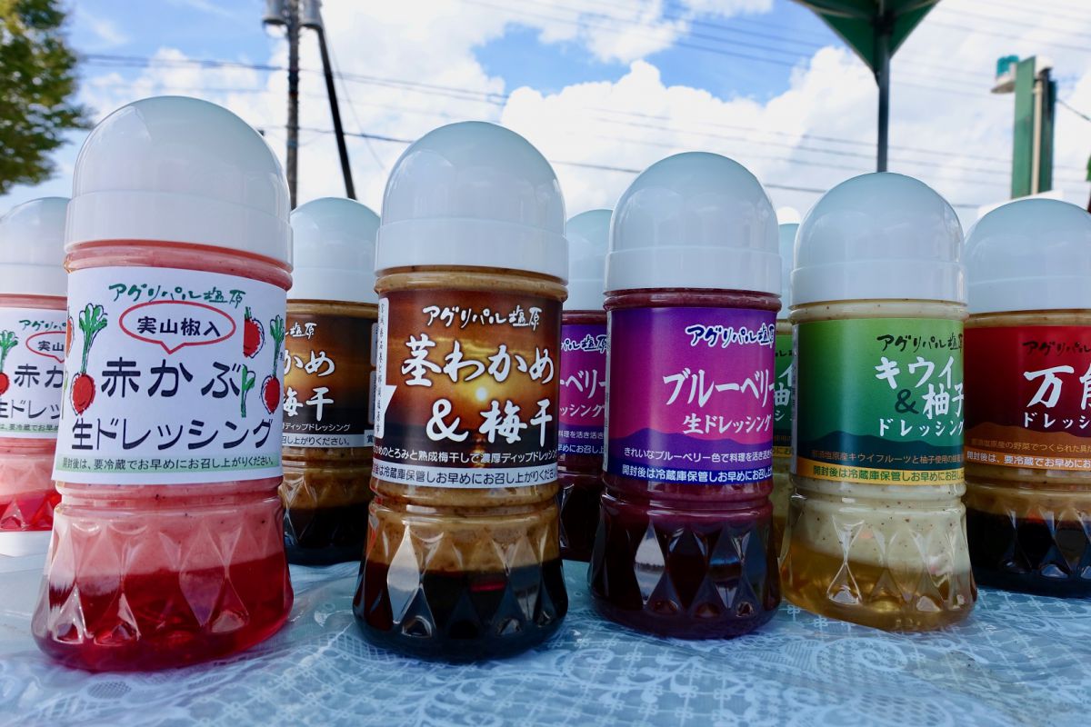 那須塩原ブランド認定の「アグリルパル塩原ドレッシング部会」のドレッシングは、栃木の特産キウイやゆず、那須むらさきなどこだわりの食材をメインに合成保存料や着色料を一切使わない手作りの品。