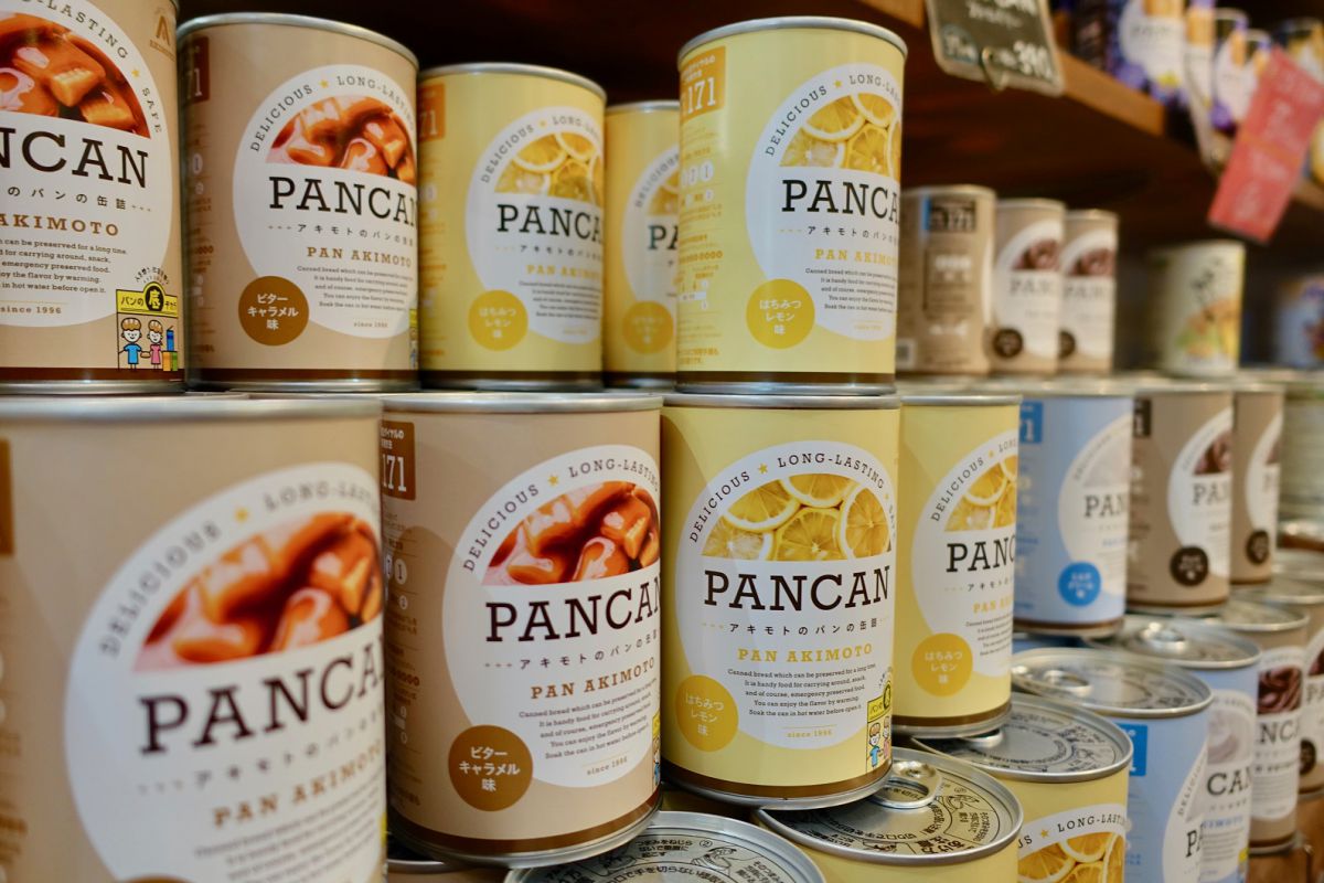 アキモトの代表作は「パンの缶詰PANCAN(パンキャン)」。阪神淡路大震災時の被災者の言葉をきっかけに開発され、現在では10種類以上を販売しています。