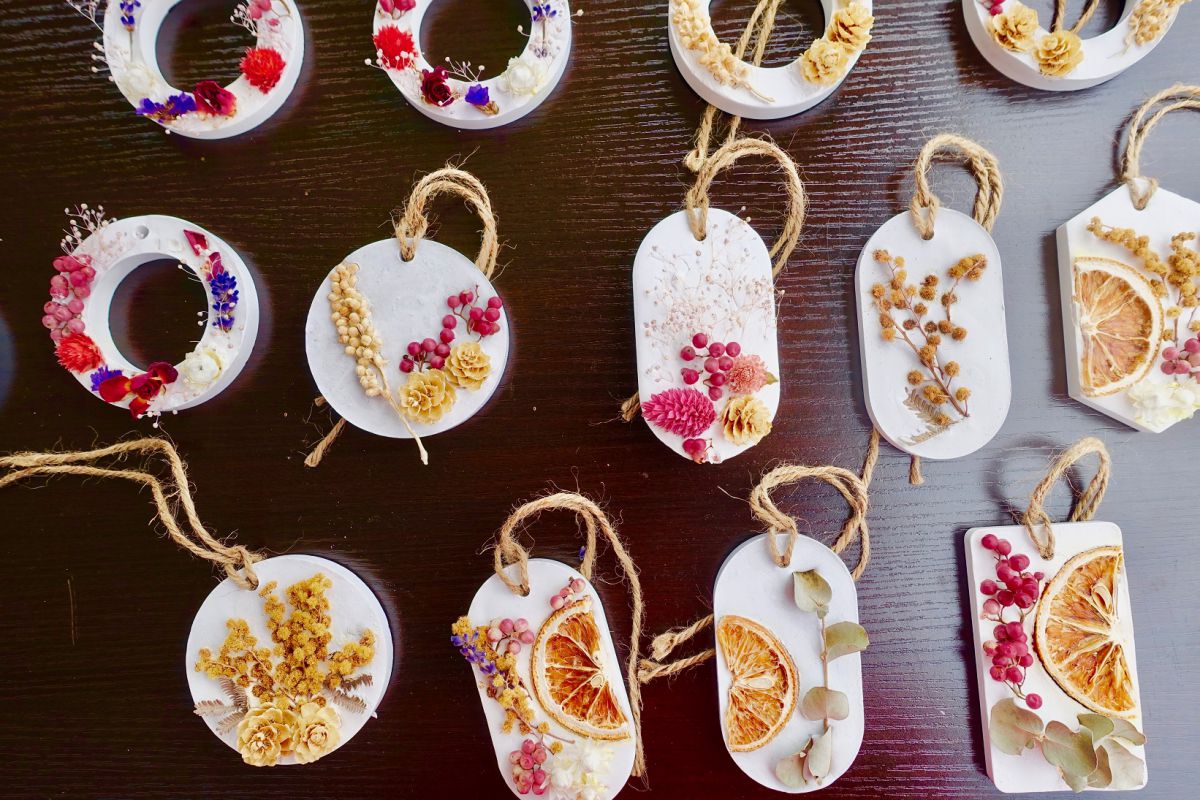 見ているだけで楽しくなるような雑貨もあります。ドライフルーツとドライフラワーであしらわれたアロマストーンや、押し花を閉じ込めたアクセサリーなど、カワイイに敏感な女性の購買欲を刺激します。