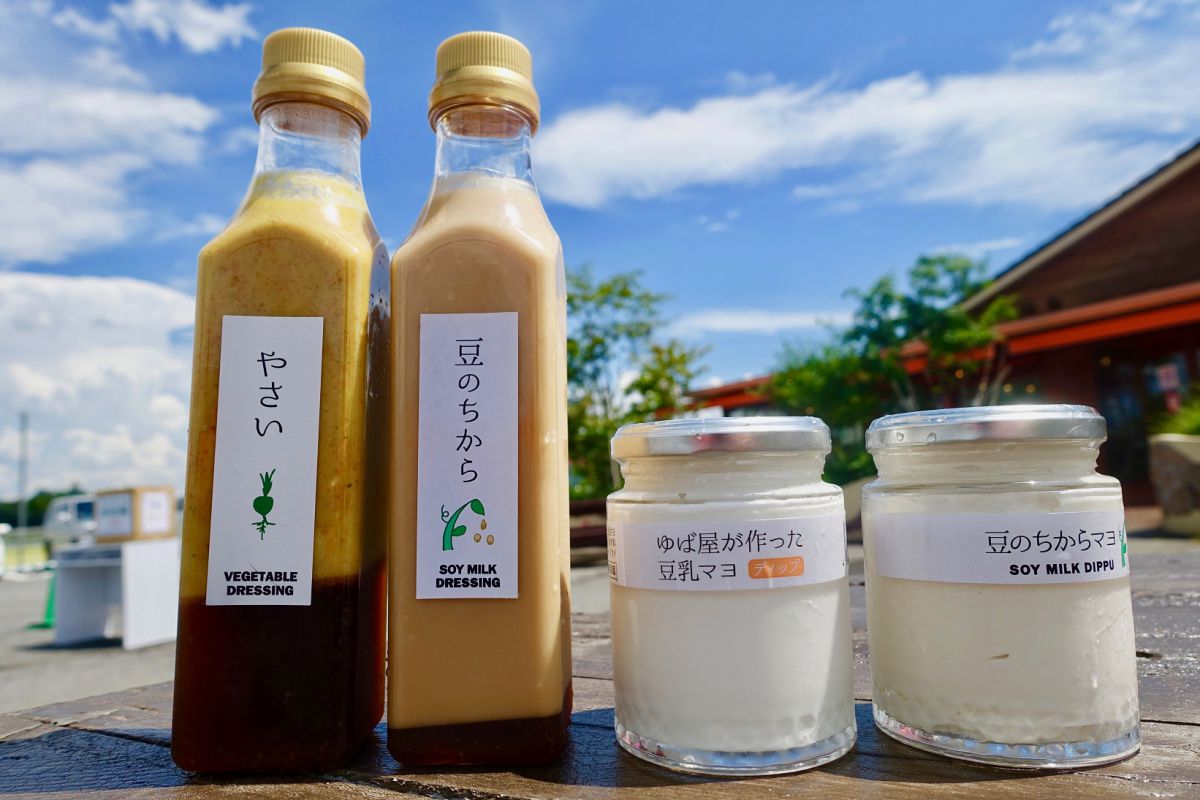 那須塩原の和食店「REN」は、生ドレッシングを販売していました。看板商品「やさいドレッシング(900円)」は、地元の人なら誰もが知っているほどの名品だそうです。しょうがやトマト、ゴマなど6種類、いずれも安全な食材を使い、和食店ならではの「おいしさ」を追求したもの。和食店ながら自社で湯葉工場を持っているそうで、製造過程で出る希少な豆乳を使った商品も展開しています。