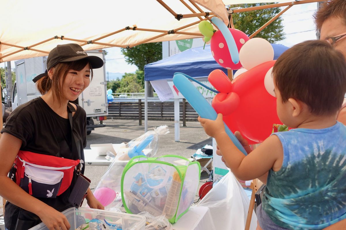 マルシェでは食や雑貨の販売だけでなく、定期的にイベントも行っています。訪れた日は、スタッフによるバルーンアート(200円)が子どもに大人気。売上はチャリティーとして寄付にあてるそうです。