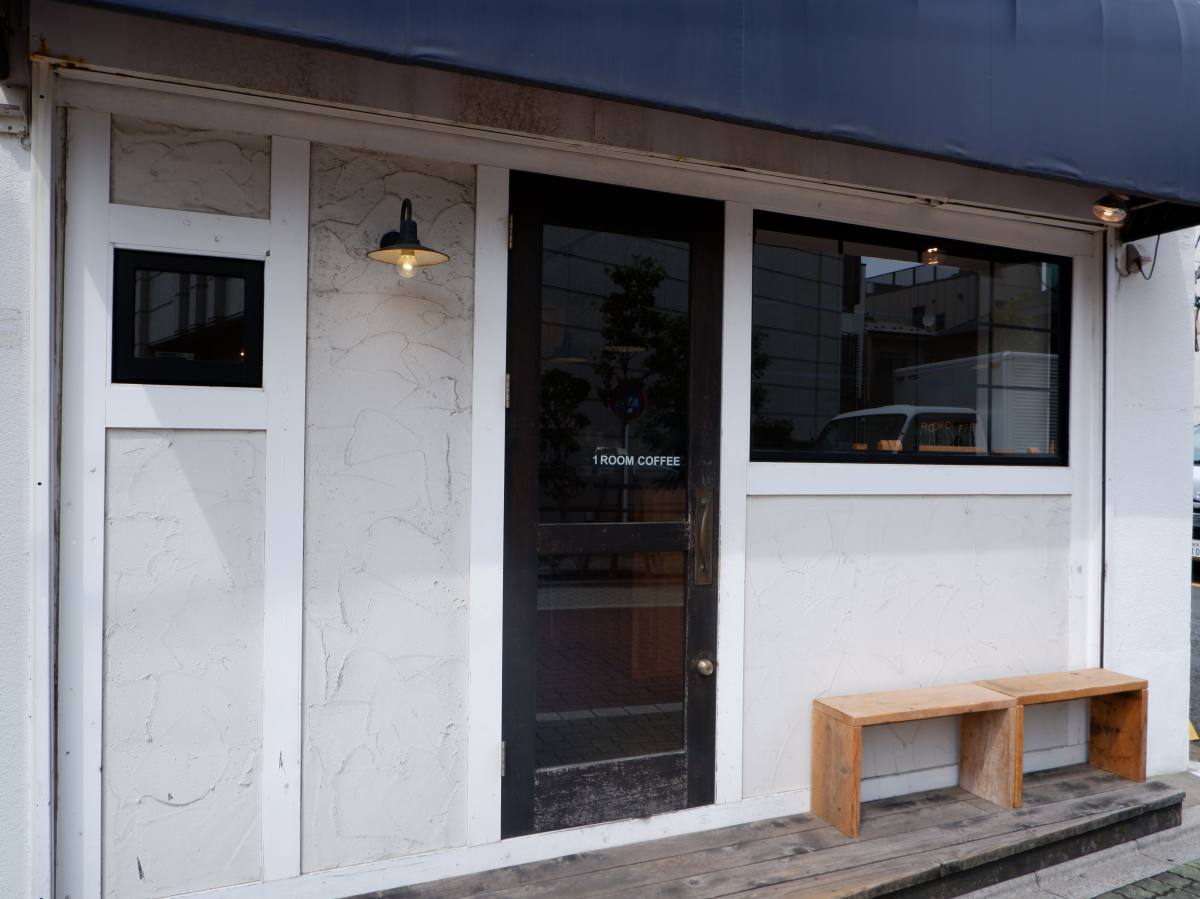 東武東上線「中板橋」駅から歩いて1分とアクセス抜群の場所にある「ワンルームコーヒー」。青い屋根と真っ白な壁のさわやかな外観が目印です。