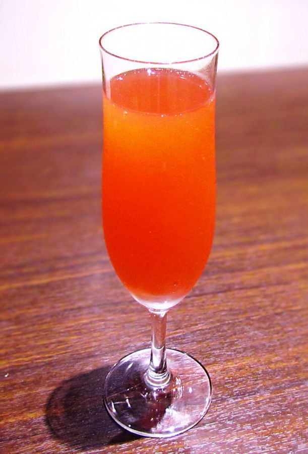 2つめは燃え立つようなオリオン大星雲をイメージした「スターリーベリーニ」(800円)。スパークリングワインとピーチジュースをブレンドしたカクテルです。こちらはお酒ですが、低アルコールなので飲みやすく女性に人気です。