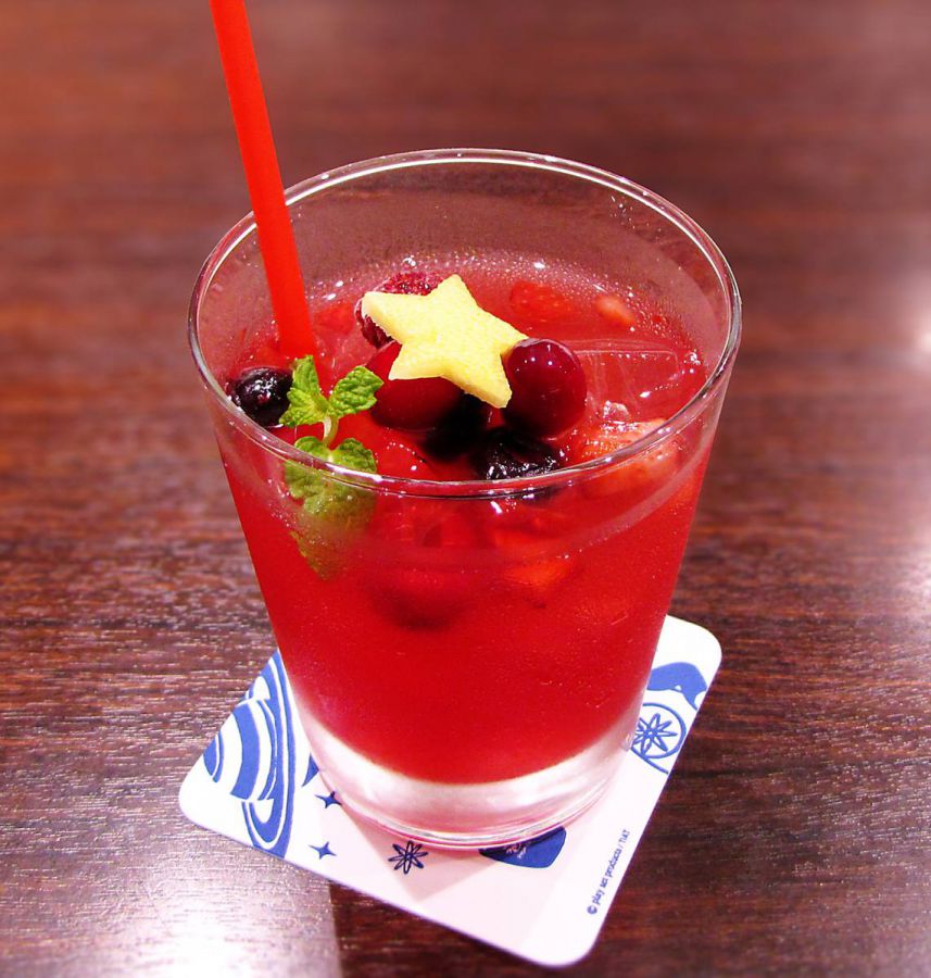 1つめは、レモンの皮であしらった星が目を引くノンアルコールカクテル「スターリーベイビーブリーズ」(700円)。クランベリー&グレープフルーツをベースにしたすっきりフルーティな味わいです。20歳未満の方もぜひどうぞ!