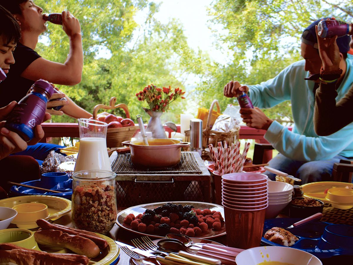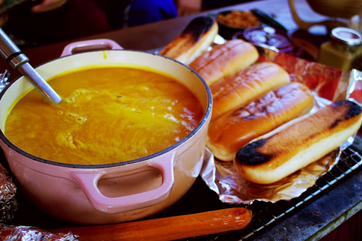 朝は気合を入れすぎず、持っていったホットドッグとポタージュを温めて朝ごはん。