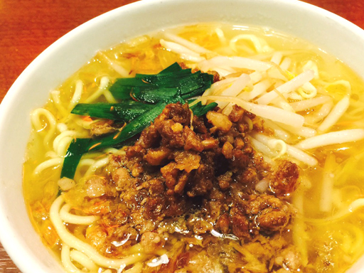 台南料理「坦仔麺(タンツーメン)」は、海老から出汁をとったスープと麺の相性は抜群!肉そぼろのトッピングもいいアクセントに。