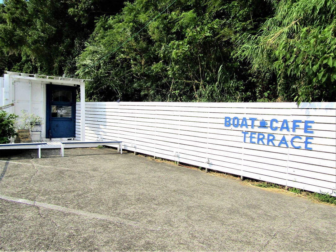 和歌山市内から南へ車で約1時間。日高郡由良町にある衣奈海水浴場の北にある「ボートカフェ衣奈マリーナ」。海を目の前にするテラスと印象的な青いドアがお出迎えしてくれます。お店に一歩入れば、ゆったりリゾートの始まりです。