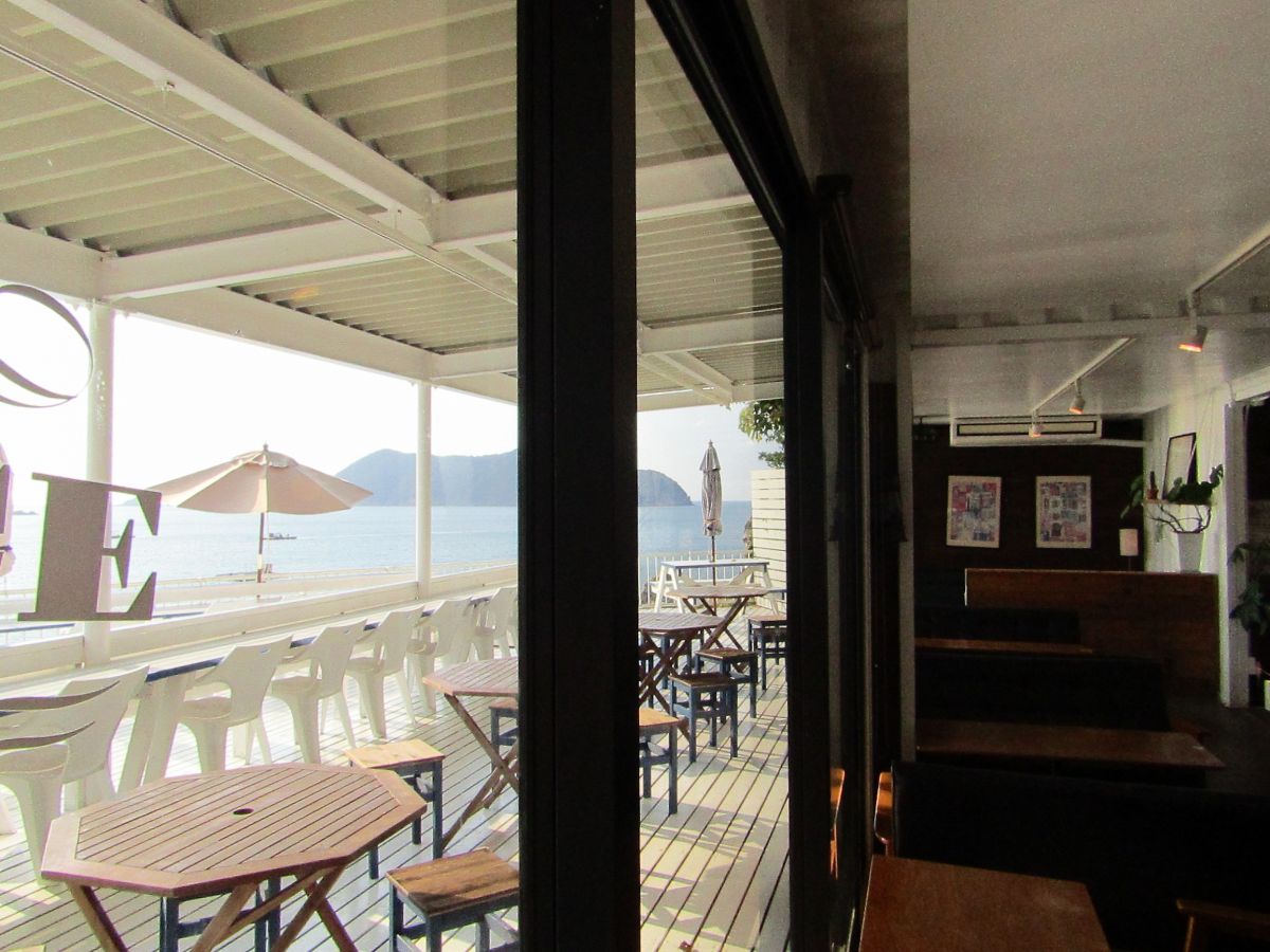 和歌山の海は、冬でも穏やかであたたかな雰囲気があり、テラス席や店内の大きな窓からは太陽の光が降り注いでいます。