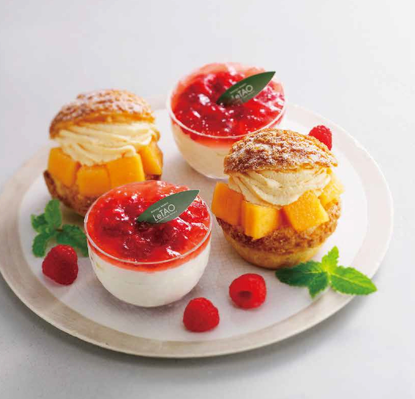 小樽洋菓子舗ルタオからは、ラズベリーとリコッタチーズクリームが絶妙な「北海道産ラズベリーとリコッタのヴェリーヌ(※写真手前・後)」432円(※各日限定200カップ)と、道央の“ぴっぷメロン”をふんだんに使ったクッキーシュー「北海道産ぴっぷメロンシュークリーム(※写真右・左)」486円(※各日限定300個)がお目見え!