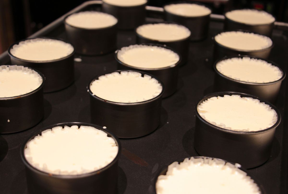 滑らかな食感の秘密は、作る工程にあります。オーブンに入れる前の生地は水分量が多くかなりトロトロ。日によって焼き上げる時間や温度を毎日調整するそうで、まさに職人の腕が光ります。しかし、これを単に焼き上げただけでは、あの食感にはたどり着きません。