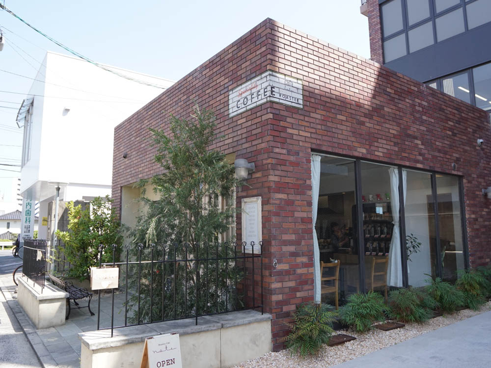 宇品の住宅街を進むと現れる、お洒落なレンガ張りの外壁。ここが「ロースタリーカフェノート」です。コーヒーはテイクアウトもできるので、このレンガ壁の前で写真を撮ればインスタ映え間違いなし!