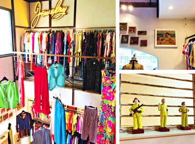 店内にはeriさんがアメリカやヨーロッパなど世界各地で買い付けてきたヴィンテージ古着とオリジナルブランドの服が並びます。まるでギャラリーのようなディスプレイや絵画など、眺めているだけでワクワクするインテリアは、ハイセンスなこの店ならでは。