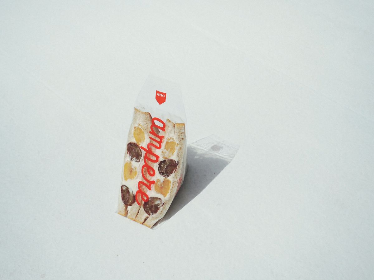「アンペア」には常時7種の食事系のサンドと、2種のデザートサンドが用意されています。今回ご紹介するのが、季節ごとに内容が変わる「フルーツサンド」(500円)!秋の間に楽しめるのが、栗を使った1品です。