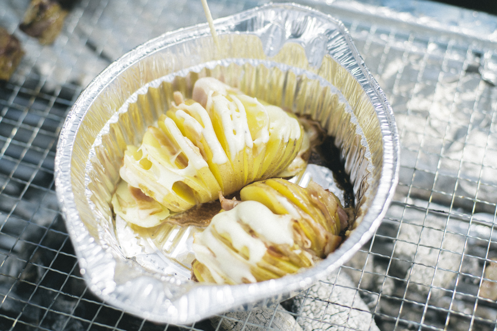 ちなみに、もっと食材のバリエーションを増やしたい人には、追加メニューも用意しています!オリジナル海鮮タレ缶詰付きの焼きそばセットは1人前200円(税別)、焼きおにぎりは1個250円(税別)などと、少しだけ頼みたい人にもうれしいオプションです。