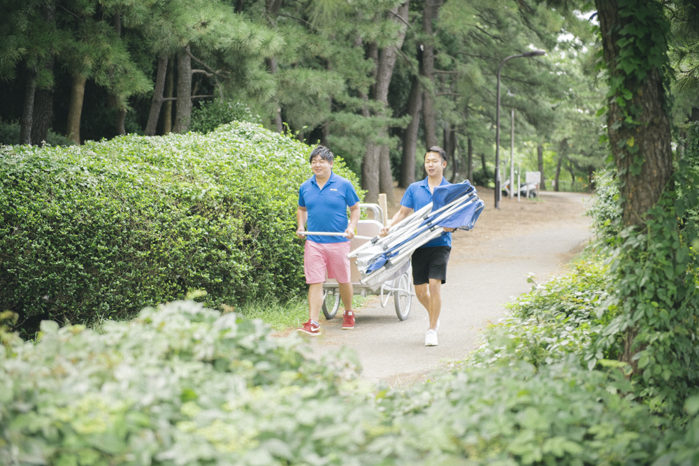 BBQグリルやテーブル、チェアなどの機材は、BBQ-PARKのスタッフが準備してくれます。その手際の良さに惚れ惚れするほど。火おこしもしてくれるので、初心者でも安心です。