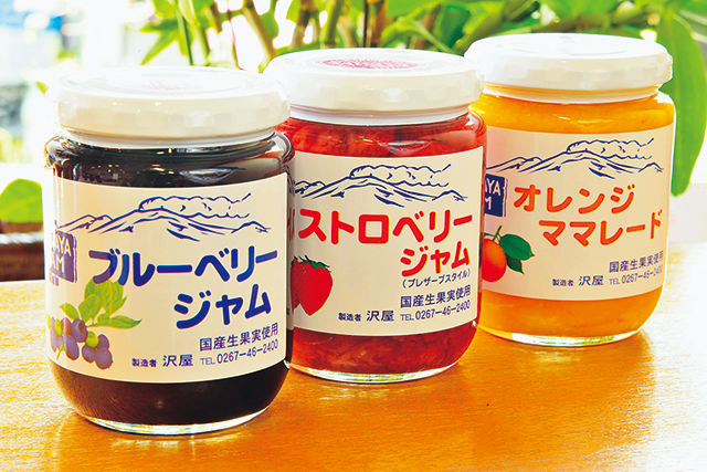 おいしいジャムが揃うことで知られる軽井沢で、人気のひとつが沢屋のジャム。旬の国産生果実にこだわったジャムは、一度食べると病みつきに! 季節によってラインアップが変わるので、「今は何があるかな?」とお店をのぞくのも楽しみ。自宅用はもちろん、おみやげにもどうぞ。