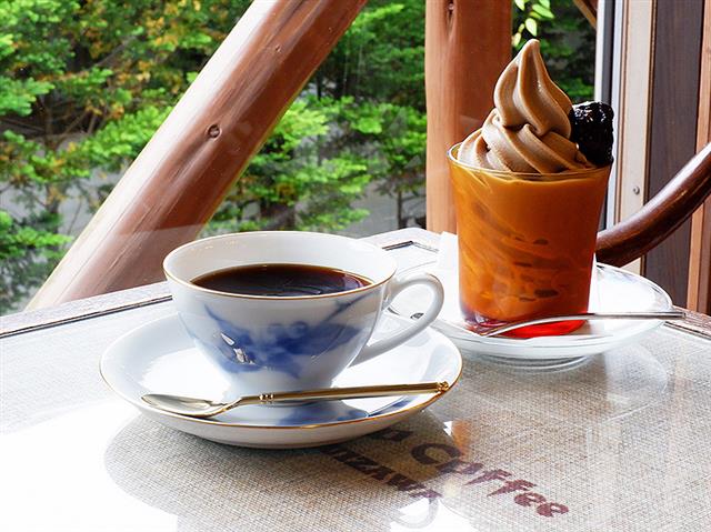 軽井沢で必ず訪れたいのが旧軽井沢銀座通り。たくさんのショップが立ち並ぶなか、立ち寄りたいのが老舗のコーヒーロースター直営の喫茶店・ミカドコーヒー軽井沢旧道店。自家焙煎の本格コーヒーはもちろん、看板メニューのカフェソフトクリームは外せません。天気のいい日には、テイクアウトして、食べながら通りのお店を見て歩くのもおすすめです。
