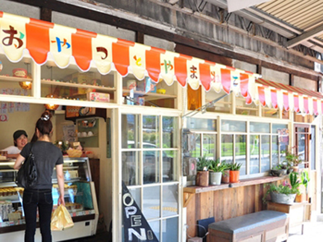 昔懐かしのオレンジの日よけとやまねこがトレードマークのおやつ屋さん!
