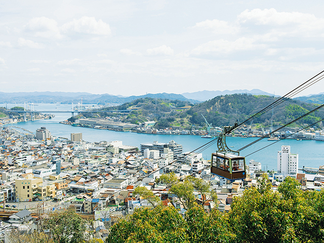 尾道散歩のスタートは、まず千光寺を目指しましょう。千光寺は海から少し奥まった大宝山の中腹にあるので、ふもとから出るロープウェイでショートカット。尾道の町並みや瀬戸内海の大パノラマを眺める3分間の空中散歩で、四季折々の美しい景色を堪能できます。