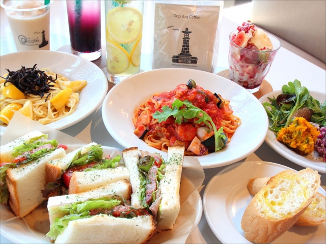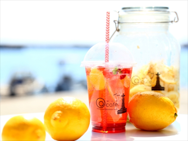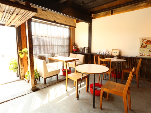 常夜燈のすぐ脇に建つ築150年の長屋カフェ。港に面した開放的な店内では、自家農園で採れたオーガニック食材のフレッシュジュースや、本格パスタ、カラフルサンドイッチなど、色とりどりでビジュアルも大満足のおいしいランチがいただけます。ドリンクをテイクアウトして波止場の雁木に座って飲むのも◎。