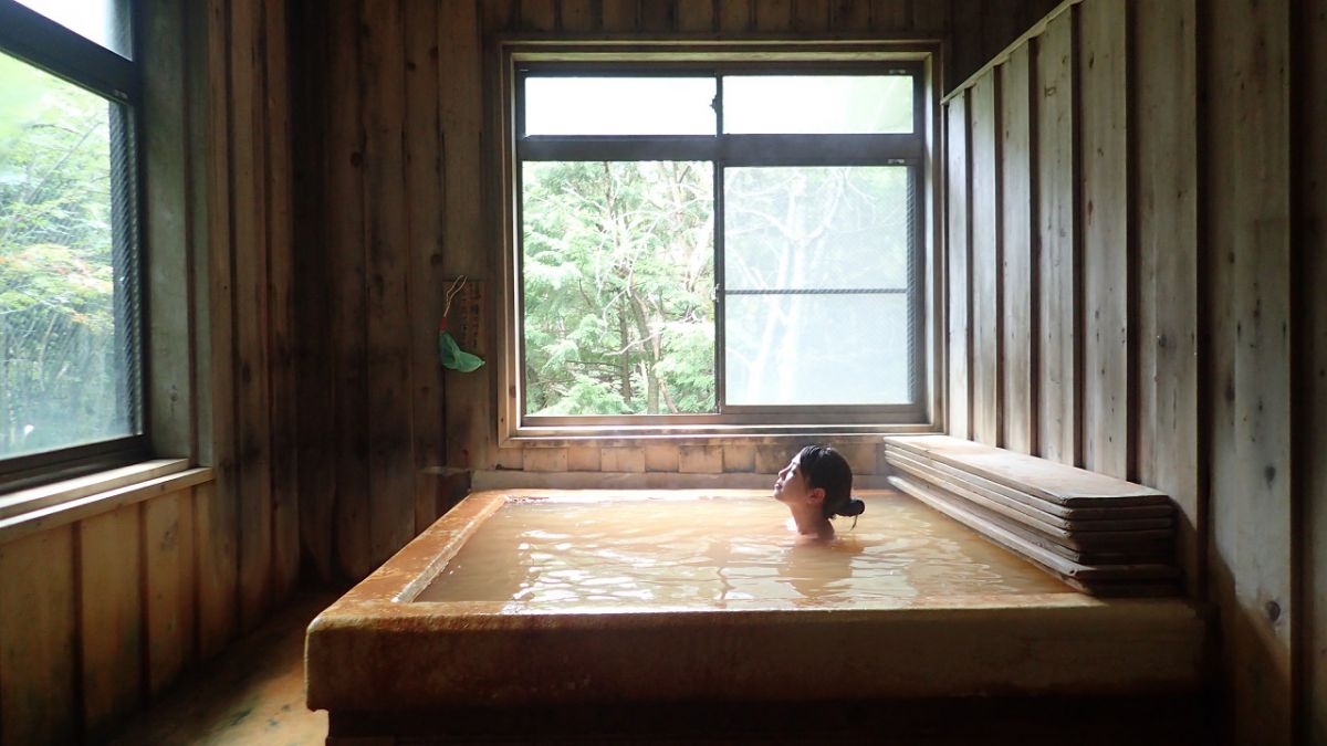 泉質は、カルシウム・マグネシウム・ナトリウム‐硫酸塩泉。硫化水素(硫黄)の香りがするとろんとした肌を包み込むような優しい湯は、お肌にハリや弾力を与え、しっとりとした潤い肌に導いてくれる、別名”アンチエイジングの湯”。青白く少し濁った湯には白と黒の湯の花が舞っています。1000mを超える場所にいるだけで血行がよくなり新陳代謝が活発になりやすいので、登山の運動効果と温泉作用のダブルパワーで美容にも健康にも◎な温泉です。