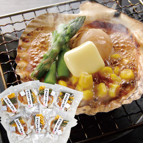 - 内容量:北海道産 帆立バター焼きセット(帆立片貝1枚、コーン10g、アスパラ10g、バター1個)×7袋