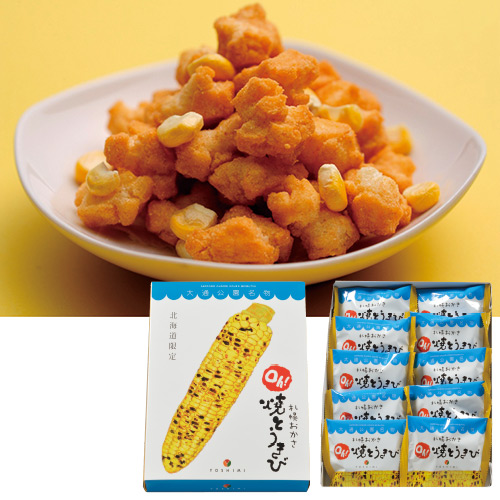 札幌・大通公園名物「焼きとうきび」の美味しさがおかきになりました。サクサク食感が人気を集めています。個包装なので、お配り土産に最適です。