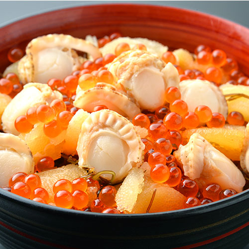 函館でしか採れない「がごめ昆布」に数の子、北海道産いくら、ほたてと超満足、豪華海鮮丼をご家庭で召し上がれます。