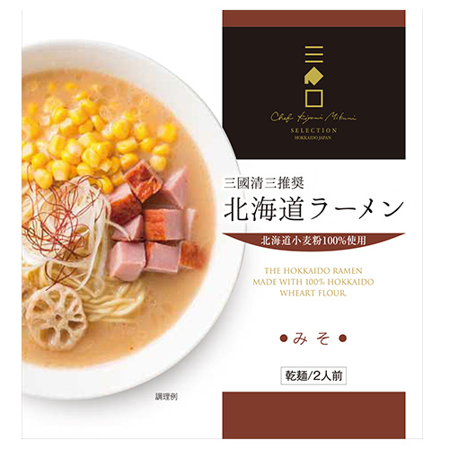 北海道出身のフレンチの巨匠・三國清三氏が厳選したお奨めの商品。北海道産小麦100%の麺と北海道産大豆使用のみそ味スープです。生麺を、徹底した湿度・温度管理で3日間熟成乾燥させる「熟成乾燥製法」で1食ずつ丁寧に仕上げました。