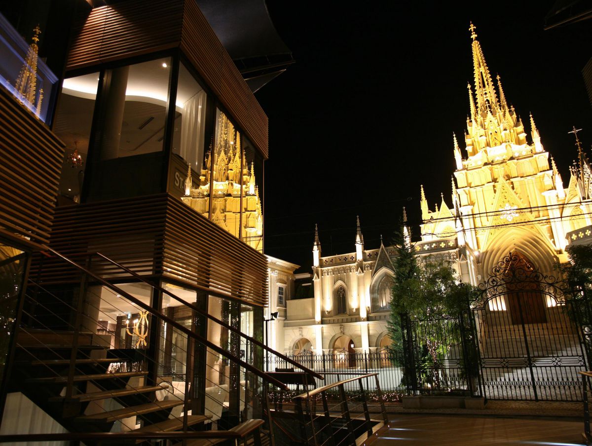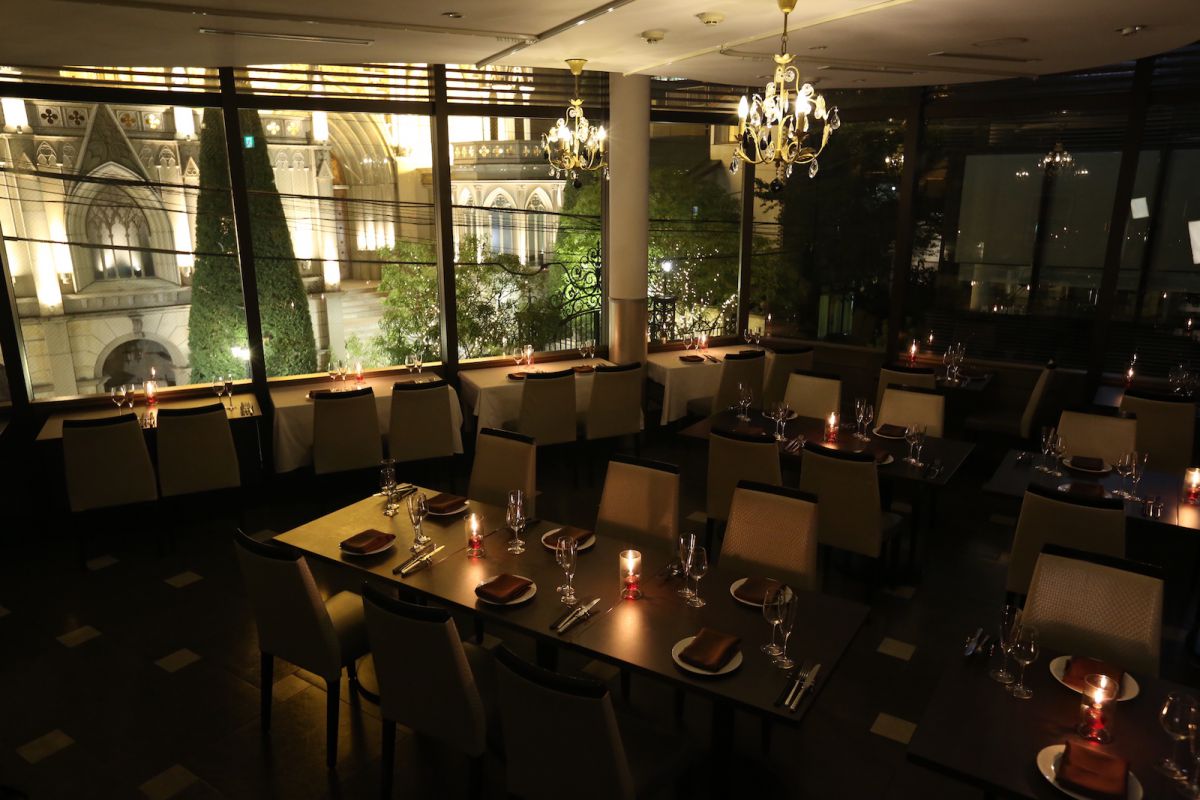 60席ある店内のどこからでも見えるこちらのチャペルは、28メートルの高さを誇るセントグレース・大聖堂。美しくライトアップされたその姿に、思わずうっとりしてしまいます。いつかあそこで結婚式をしたい…!なんて、お友達とのおしゃべりも思わず盛り上がりそう。