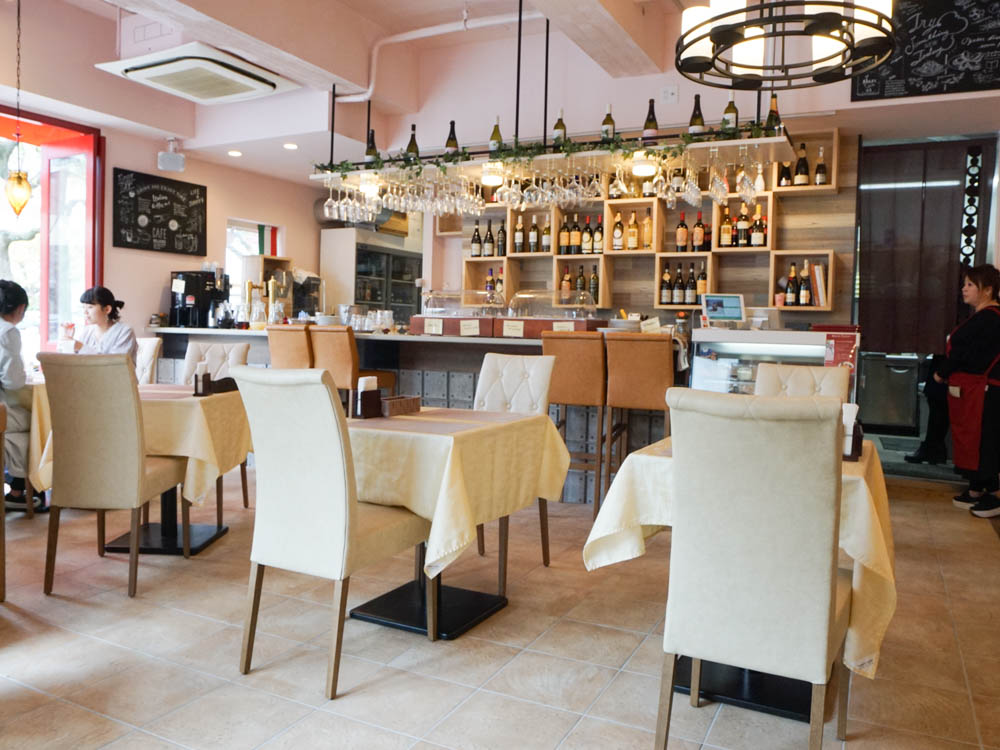 店内のインテリアは白に統一されていて、広々としています。座席はカウンター席も含めて全30席。テラス席もあるので、天気のいい日はぜひ外で食事を楽しんでみてください。