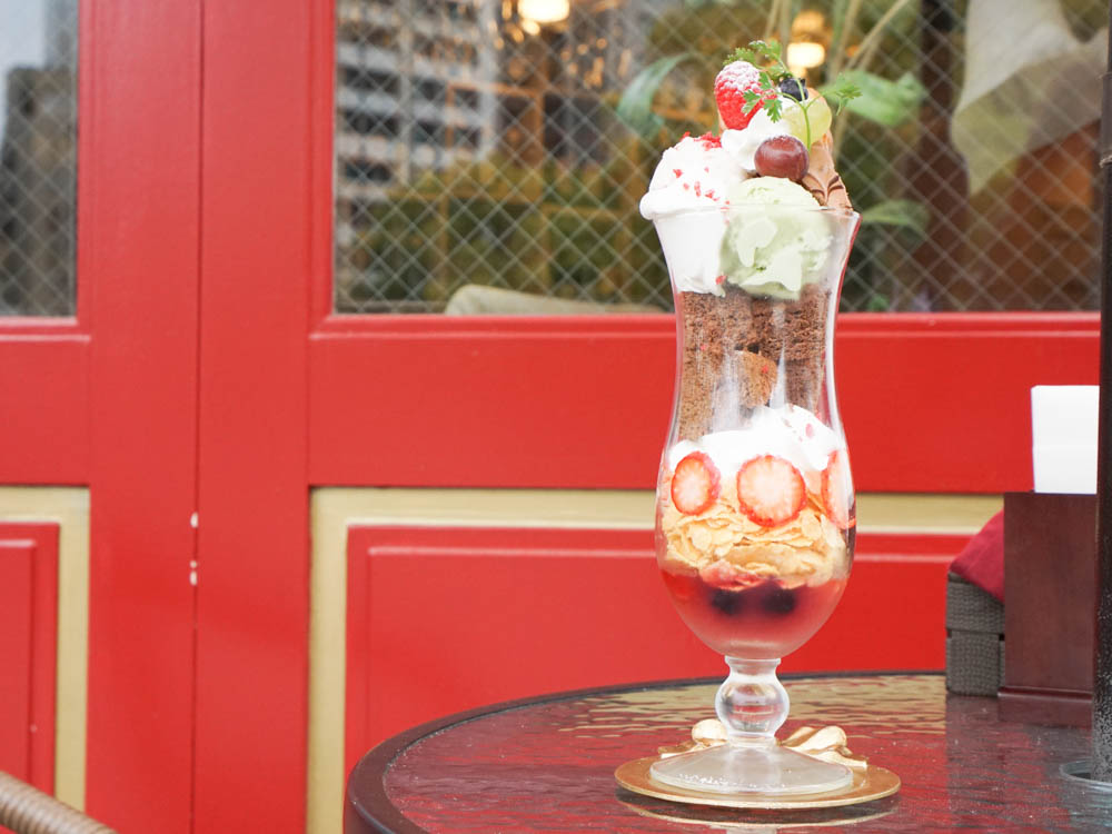 下から、ゼリー・フレーク・スポンジ・アイスクリーム・ケーキが入っていて、フルーツやクリームもたっぷり!女子が大好きな組み合わせですよね。そして、なんとこちらの中身は日によって変わるので、来るたびに新しい味を楽しめます。この日はピスタチオのアイスにチョコレートのスポンジでした。