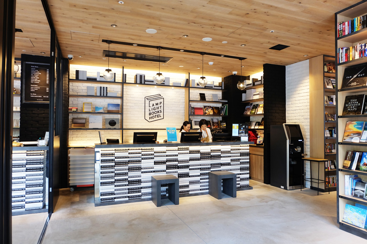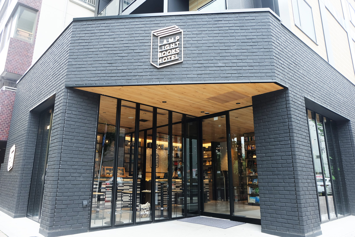 「本の世界を旅するホテル」をコンセプトに、1階はブックカフェ、2階以上はホテルとして利用できるこちら。ブックカフェは、宿泊しなくても24時間利用ができ、気軽に本を楽しむことができます。