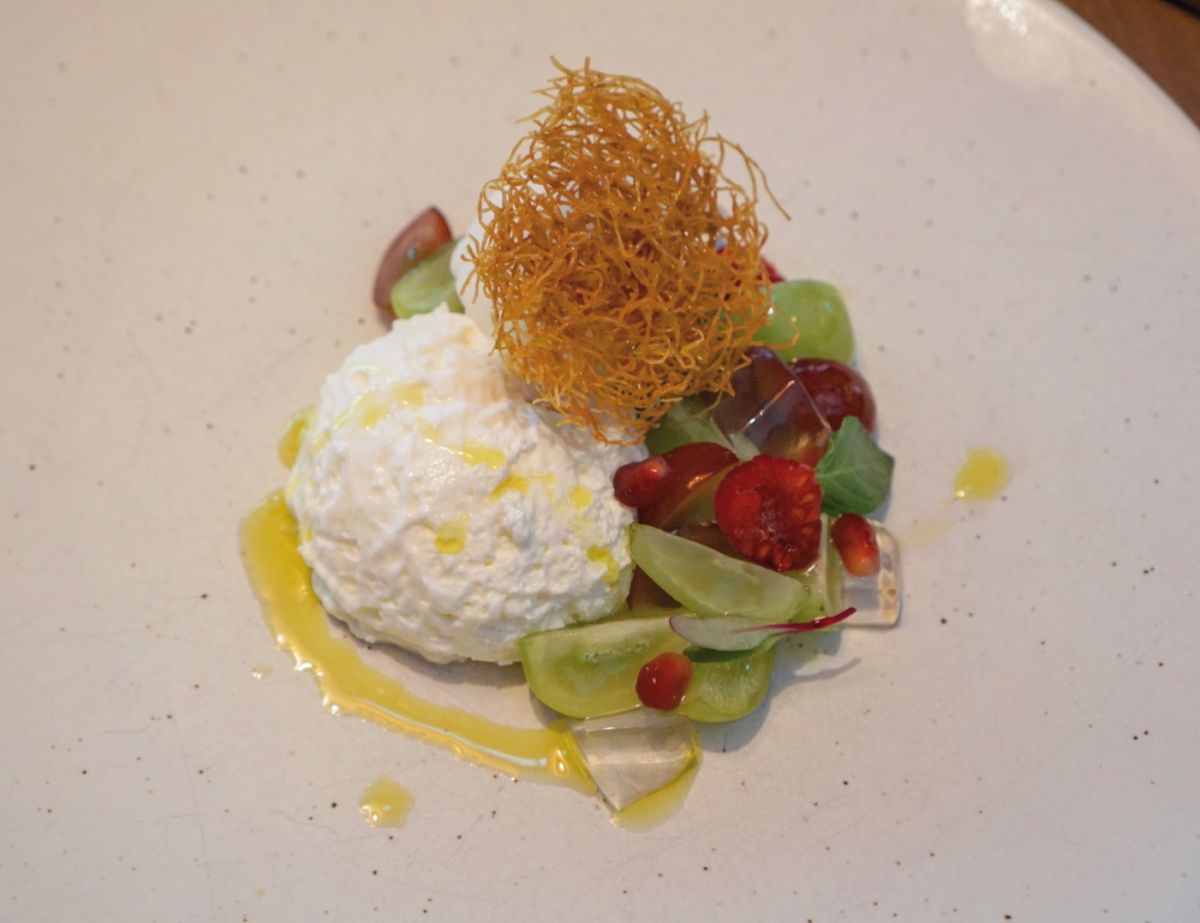 友人は「クレームダンジュ マスカット レモングラスのジュレ レモンソルベ(オーム乳業 フロマージュブラン使用)」を。爽やかな味わいで、さっぱり美味しく締めることができます。