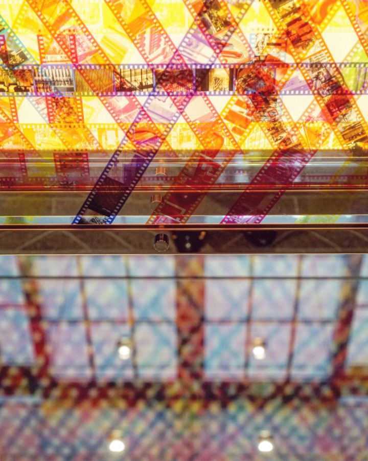 ホテルのエントランスには銀座を写した写真のフィルムネガ、「NAMIKI667」には、活版をモチーフにした大きな壁。