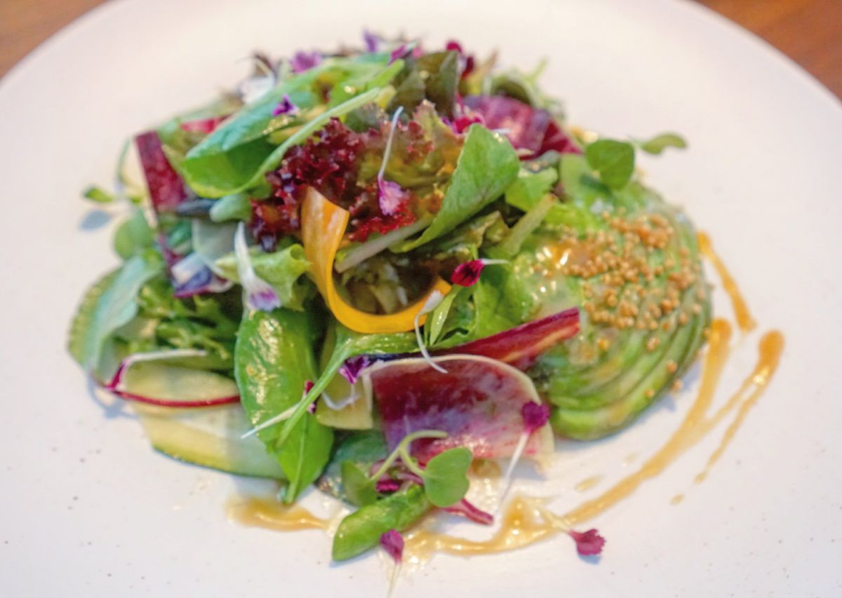 前菜に私が選んだのは、キヌアとアボカドのグリーンサラダ。ジンジャードレッシングが本当に美味しくて、野菜が苦手な人でもやみつきになる味です。