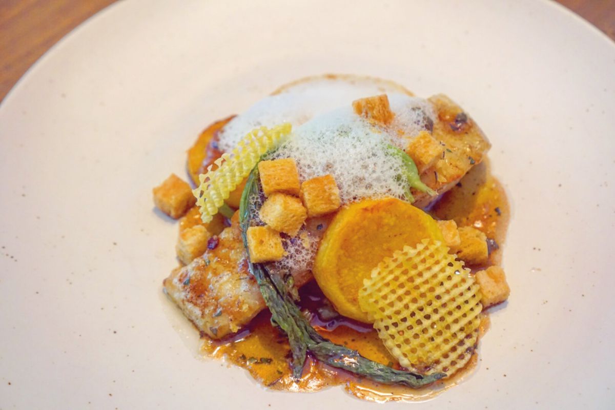 メインは、「鮮魚のムニエル グルノーブル風 レモン ケッパー クルトン 焦がしバターの泡」。
