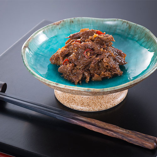 松阪牛を見極める目利きの技とこだわりの伝統製法で仕上げたしぐれ煮に、ほど良い辛味を加えた逸品。ご飯にはもちろんお酒にもよく合います。