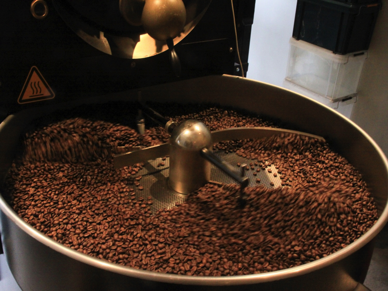 「TERA COFFEE and ROASTER」のこだわりは、自家焙煎とハンドドリップ。この大きな焙煎機で毎日のように焙煎を行っています。常時20種類以上が揃うコーヒー豆は、世界各地の生産地に店主が直接足を運んで厳選。それぞれの豆に合った方法で自家焙煎しています。