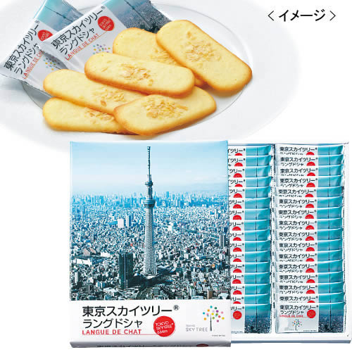 ホワイトチョコをサンドしたラングドシャです。表面に東京スカイツリーが刻印されている、東京スカイツリー公認の商品です。