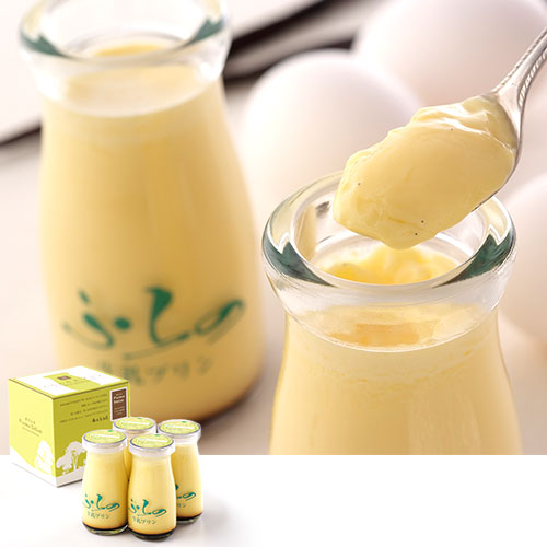 「北海道・富良野」菓子工房フラノデリスの看板メニューです。ガラスの容器で柔らかく焼き上げたいという思いから、小さな牛乳瓶でプリンを作っています。