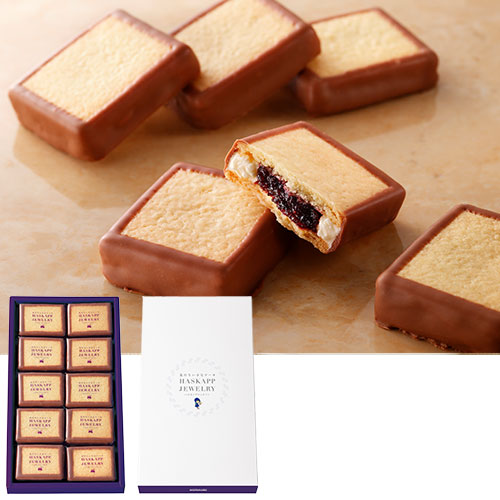 昭和53年誕生から、愛され続けるロングセラー。北海道特産の「ハスカップ」をジャムに仕立てて、バタークリームと共に薄焼きクッキーでサンドしました。