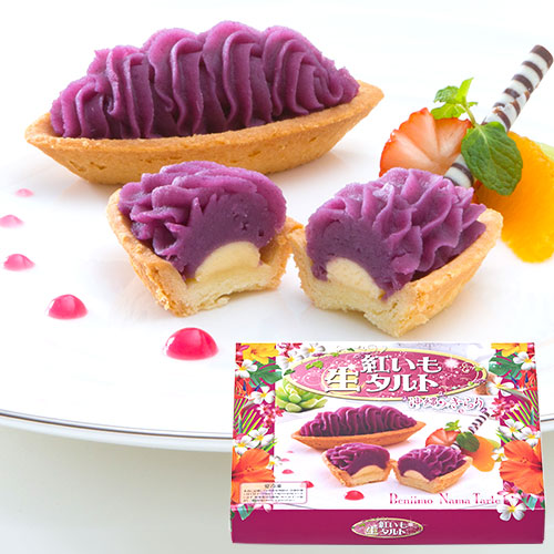 ホイップクリームを合わせ、なめらか食感に仕上げた贅沢「生」紅いもタルトです。