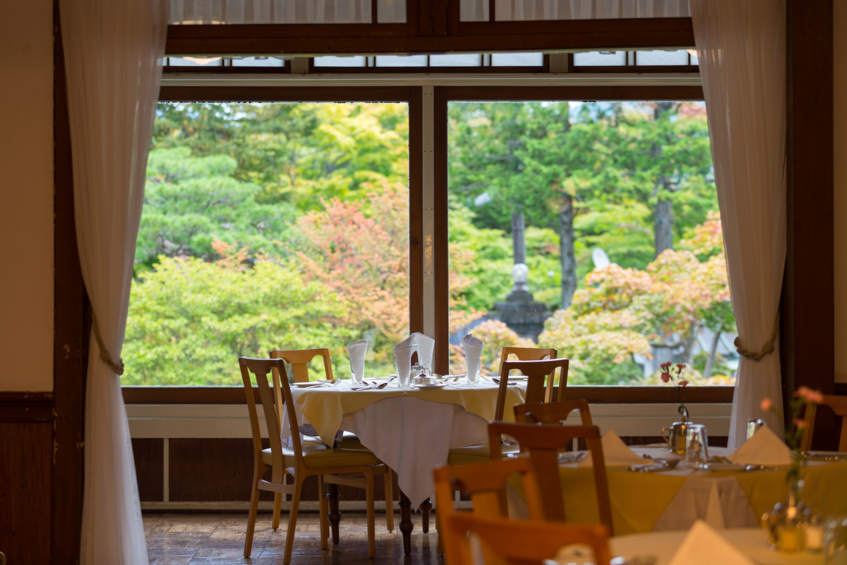 食事は、本館2階のダイニングルームでいただきます。金谷ホテル伝統のフランス料理を楽しめ、どれも絶品。こちらは宿泊者以外の利用も可能なので、日光観光の際の食事スポットとして利用するのもおすすめです。