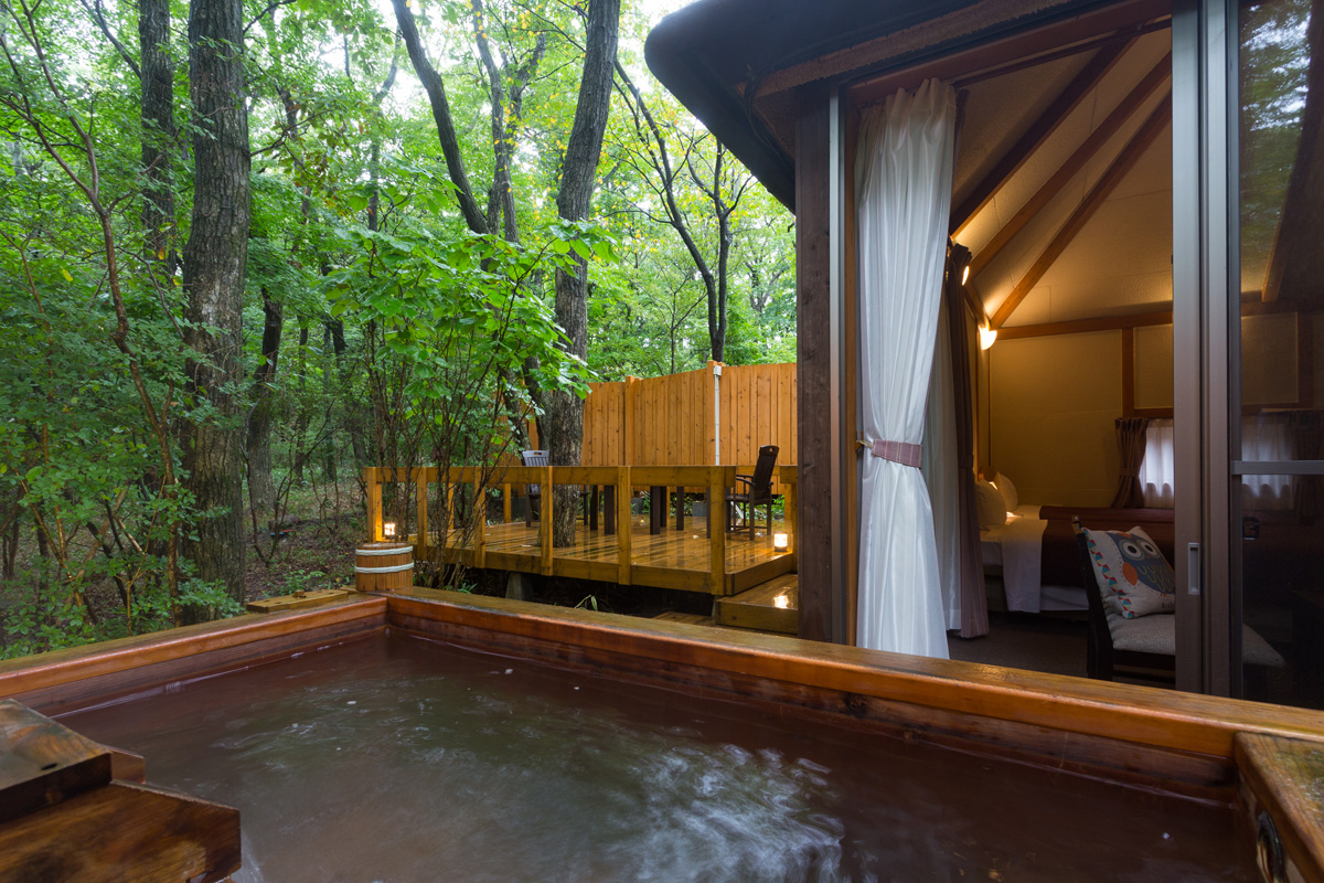 通常楽しめる3つの泉質のほかに、もう1種類の泉質も楽しみたいという温泉好きな人には、「ふくろうの森」に備わる露天風呂付洋室への宿泊がおすすめ。