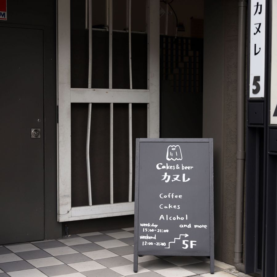 今回ご紹介したいのは、1階にある看板以外に目印はこちら!といったものは特にない、京都の雑居ビルの中のカフェ「カヌレ」さん。扉を開けるまで少しドキドキするけれど、一歩中へ踏み込むと、そんなドキドキを受け止めてくれるノスタルジックな色調に彩られたカフェ空間が出迎えてくれます。美味しいカヌレと共に。