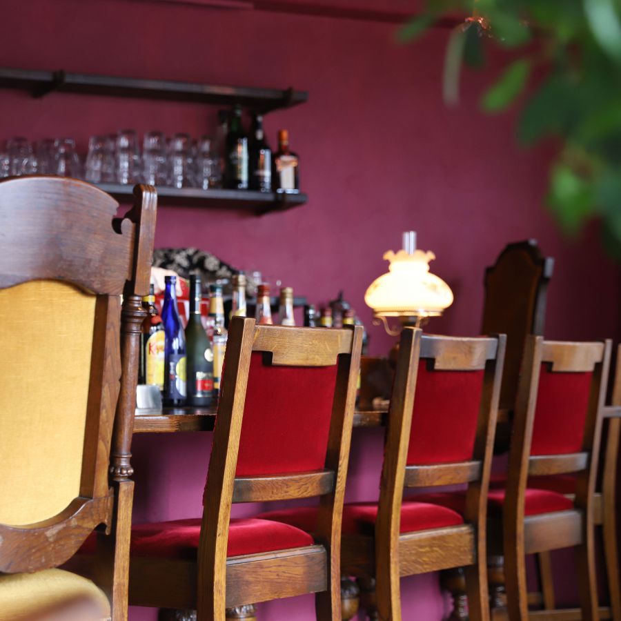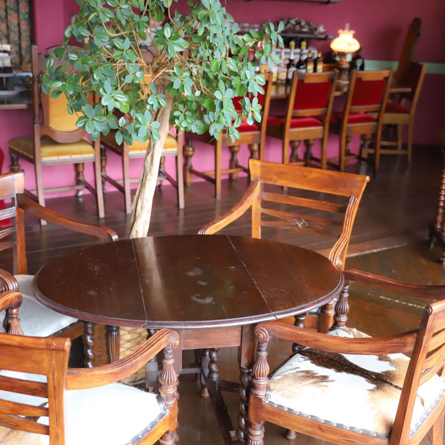 角っこにある、アンティーク調の丸テーブルが配されたこちらの席。