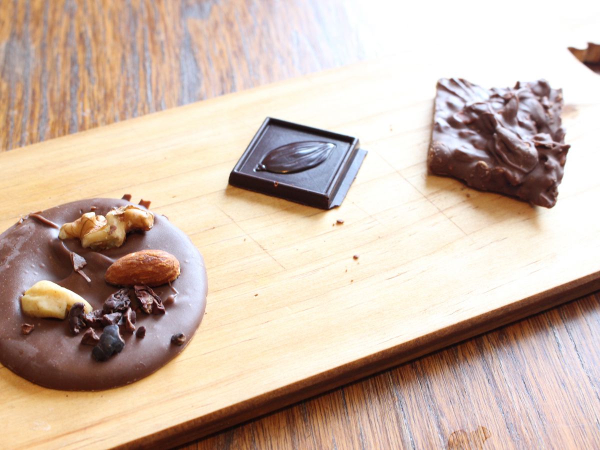 ミルクチョコのベースにナッツがのった「まぁるいチョコレート」や、チョコレートの風味や苦みがシンプルに味わえるカカオ85%使用の「シングルオリジン ガーナ」。ちょっと珍しい「赤山椒チョコレート」。パンチのある赤山椒と、ミルクチョコレートの相性を味わってみて。